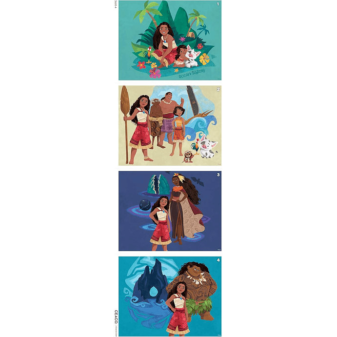 Embárcate en una nueva aventura por los mares con este hermoso multipack de 4 puzzles de 500 piezas, inspirado en la película Moana 2 de Disney. Cada puzzle captura una escena distinta llena de magia, cultura y conexión con la naturaleza, protagonizada por Moana, Maui y sus nuevos aliados mientras exploran islas místicas, enfrentan desafíos ancestrales y siguen el llamado del océano 🌺🌊.